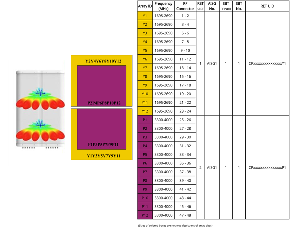 | Internal RET | High band (1) | Mid band (1) |