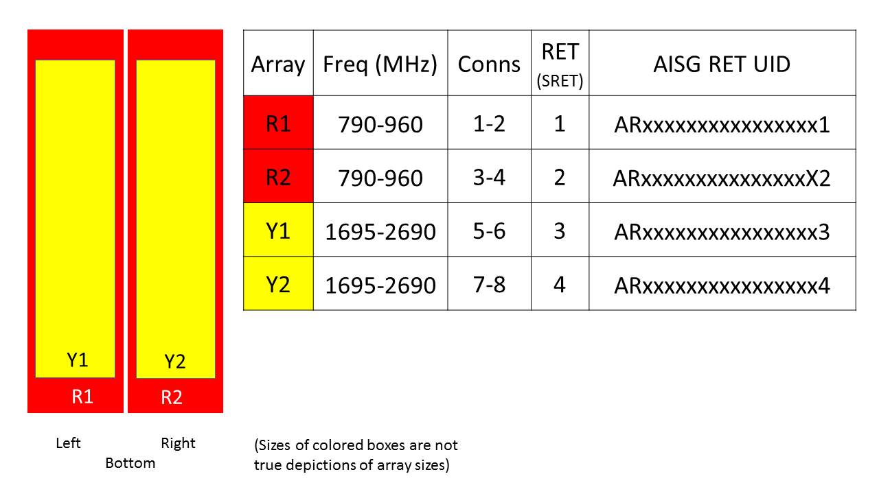 | Internal RET | High band (2) | Low band (2) |