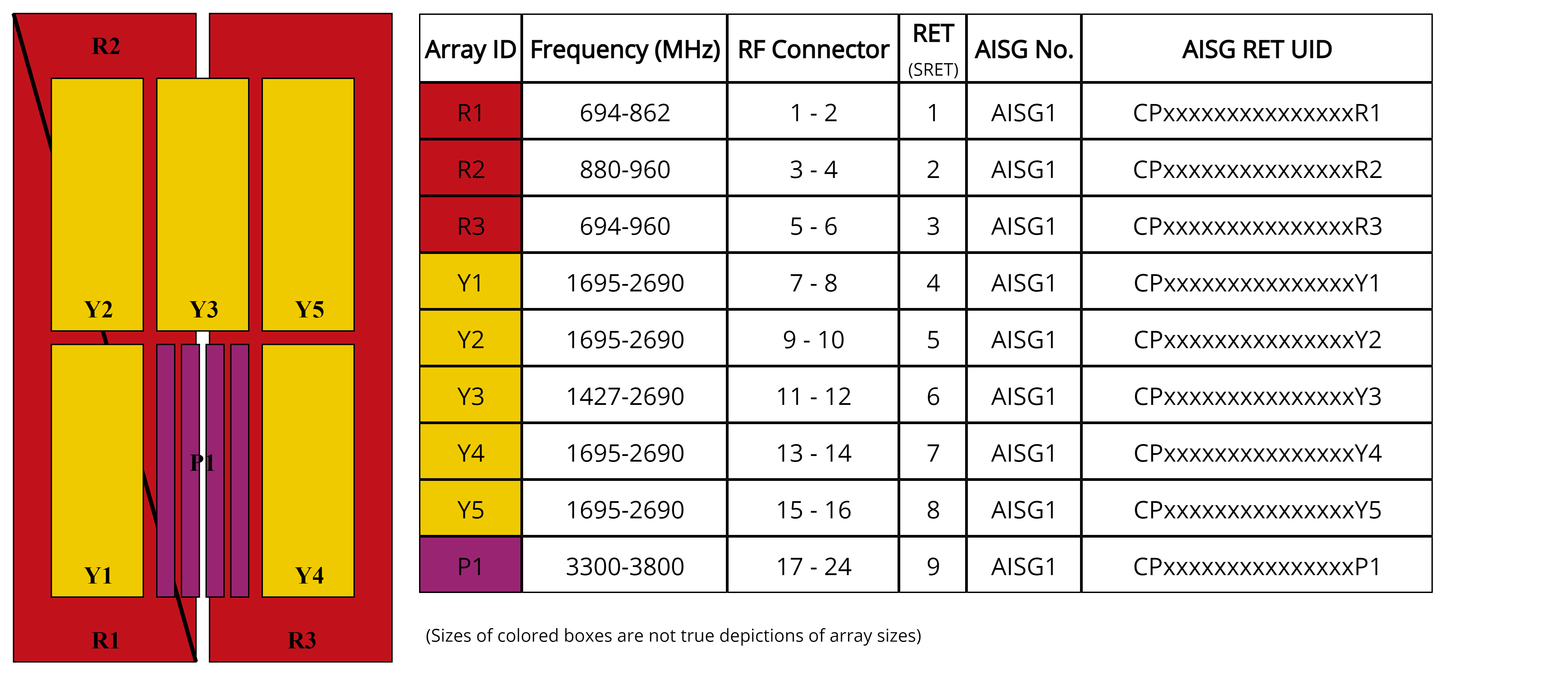 | Internal RET | High band (1) | Low band (3) | Mid band (5) |