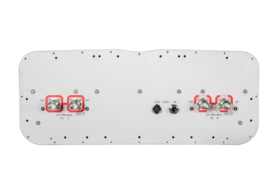 4-port sector antenna, 4x 617–894 MHz, 65° HPBW, 2x RET, 600MHzReady Antenna Technology
