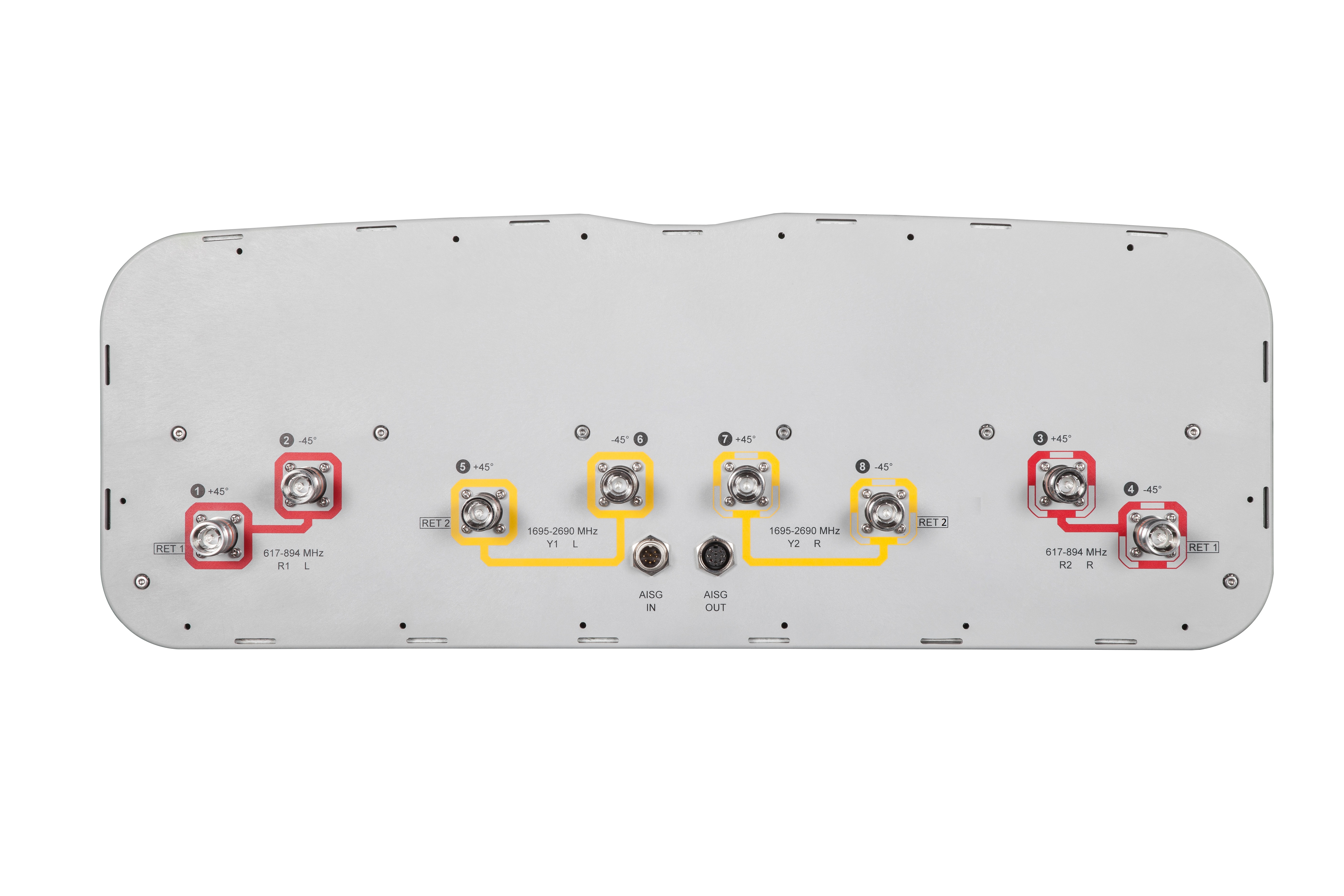 8-port sector antenna, 4x 617-894 and 4x 1695–2690 MHz, 65° HPBW, 2x RET