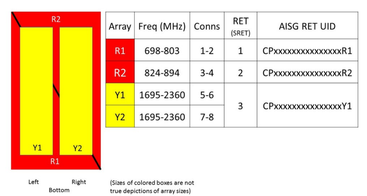 • One RET for 700MHz, one RET for 850MHz, and one RET for both high bands to ensure same tilt level for 4x Rx or 4x MIMO