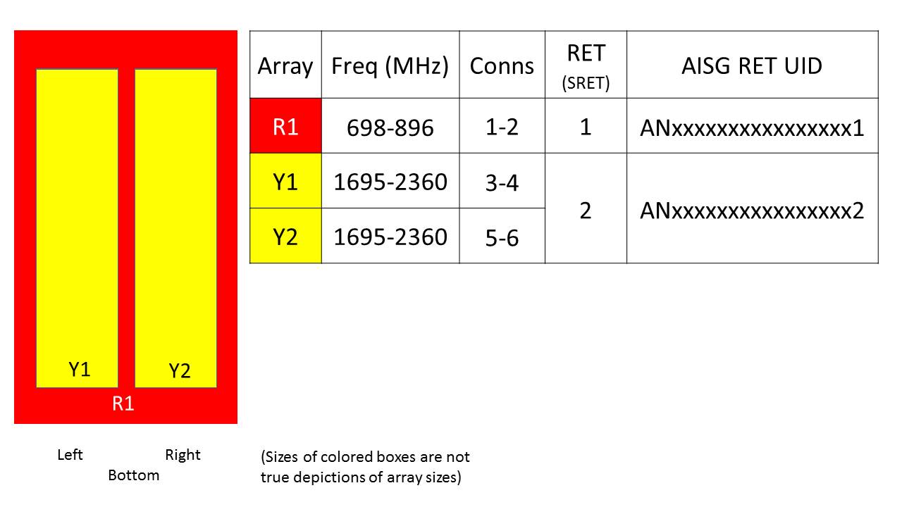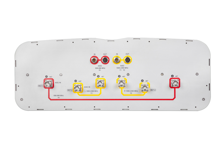 - One LB RET and one HB RET. Both high bands are controlled by one RET to ensure same tilt level for 4x Rx or 4x MIMO