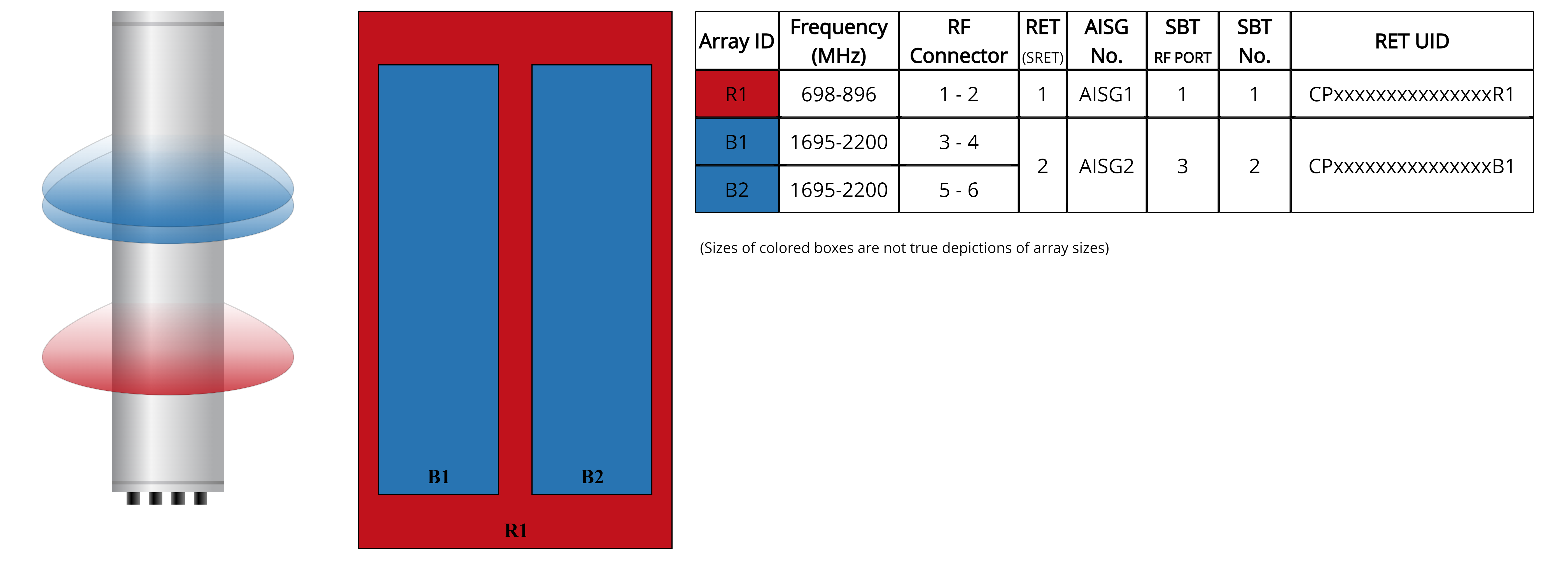 - One LB RET and one MB RET. Both mid band arrays are controlled by one RET to ensure same tilt level for best 4x4 MIMO performance