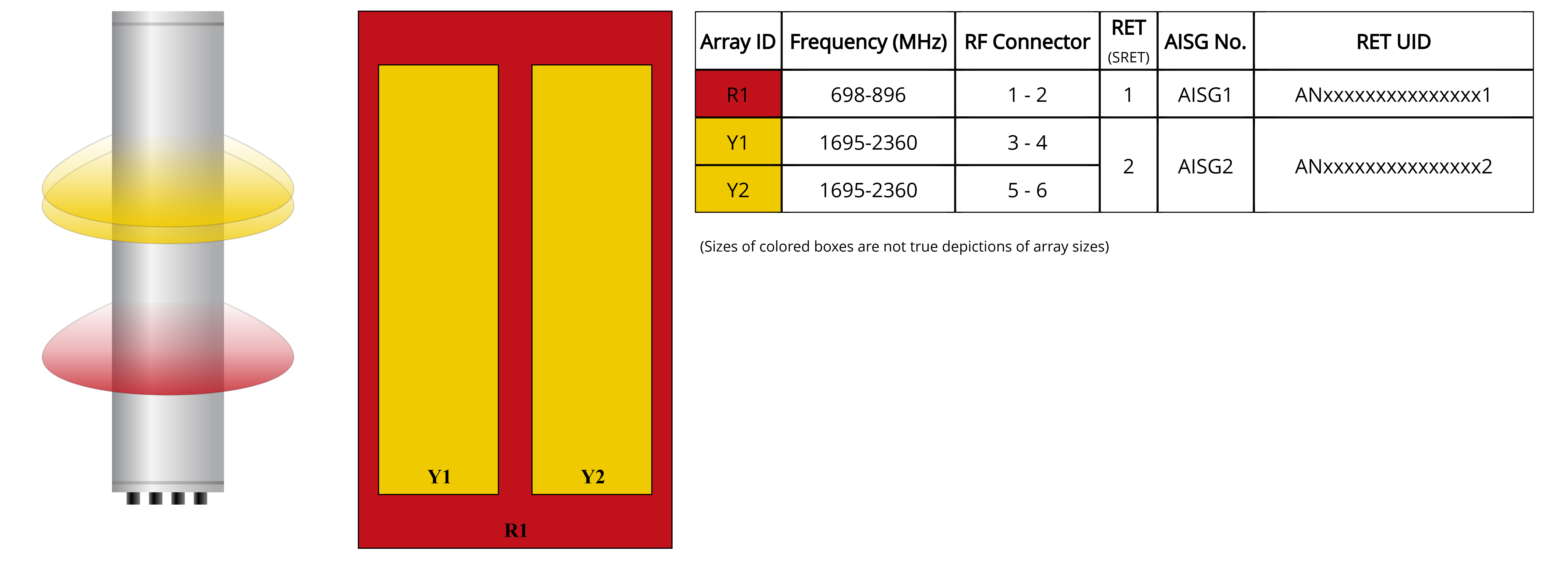 • One RET for low band and one RET for both high bands to ensure same tilt level for 4x Rx or 4x MIMO