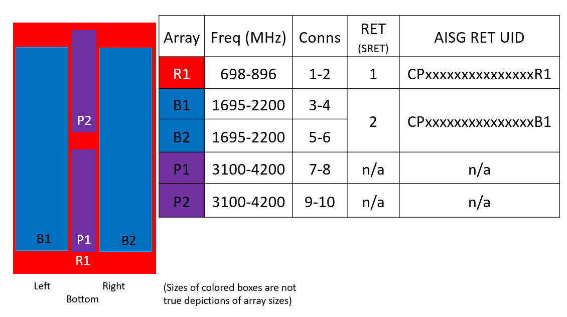 - One LB RET and one HB RET. Both high bands are controlled by one RET to ensure same tilt level for 4x MIMO