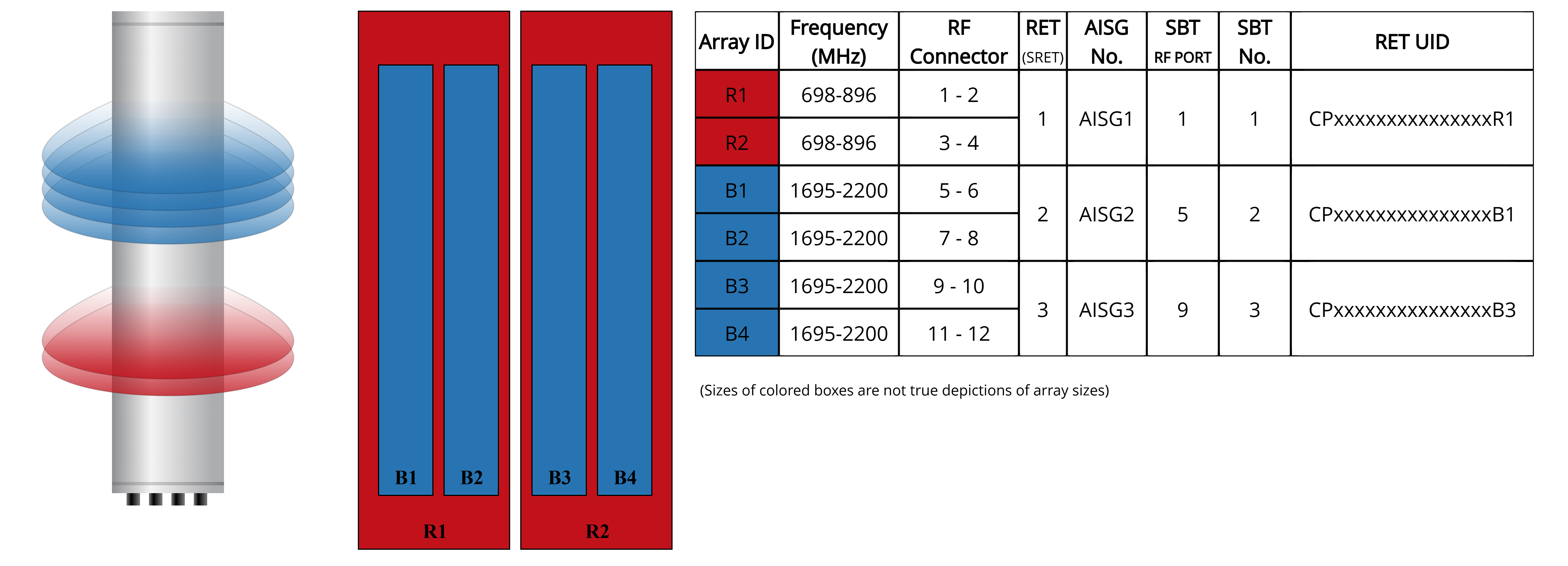 • Internal SBT on low and mid band allow remote RET control from the radio over the RF jumper cable