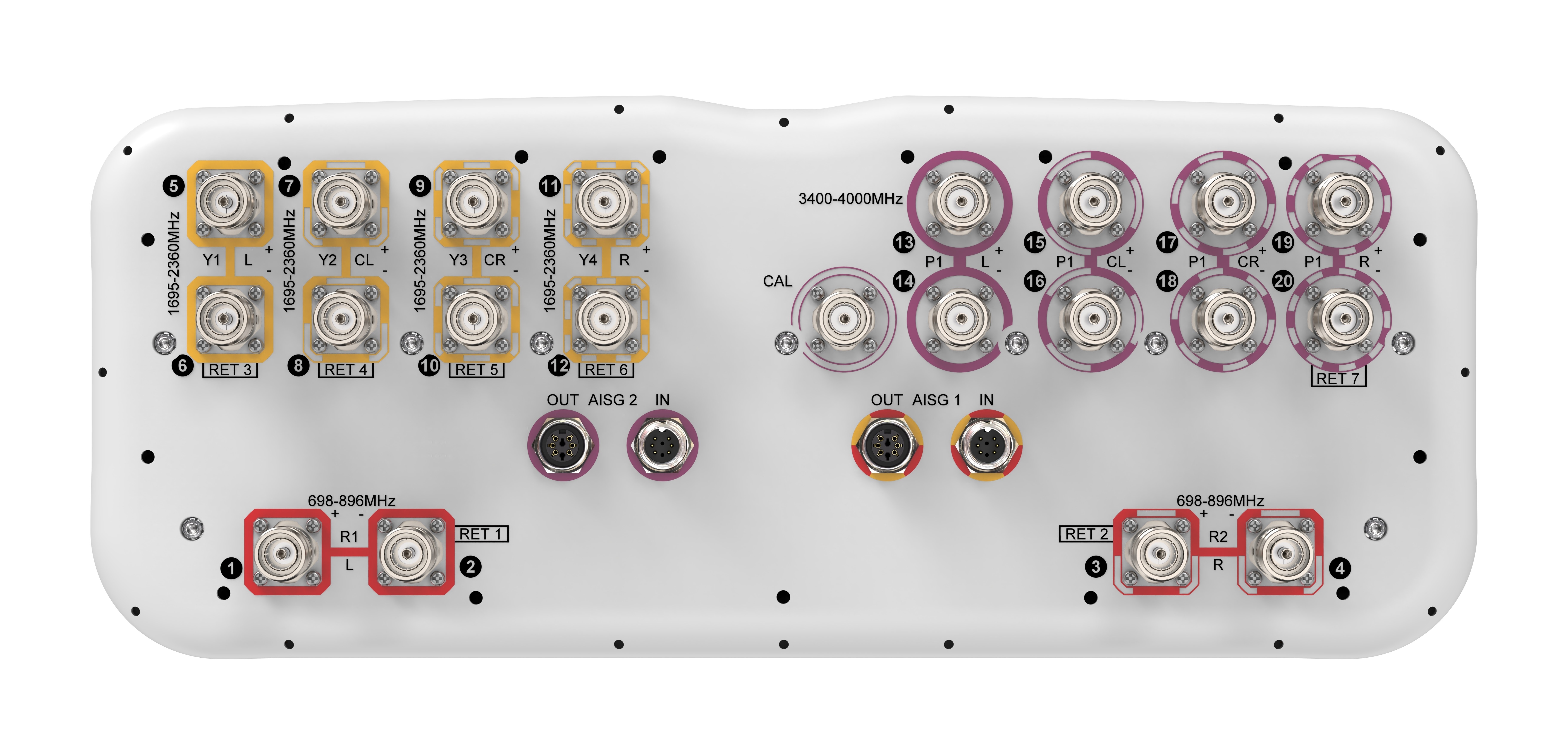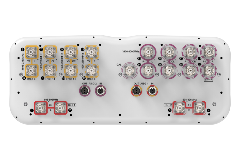 20 Port Sector Antenna & Beamforming , 4x698-896 MHz, 8x1695-2360 MHz, 65° HPBW and 8x3400-4000 MHz Beamformer, 7XRET