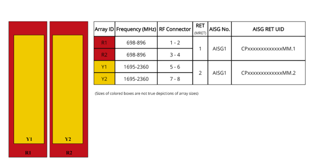 • Array configuration provides capability for 4T4R (4x MIMO) on Low band and Mid band