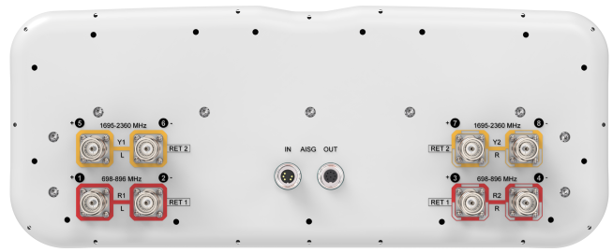 8-port sector antenna, 4x 698–896 and 4x 1695–2360 MHz, 65° HPBW, 2x RETs