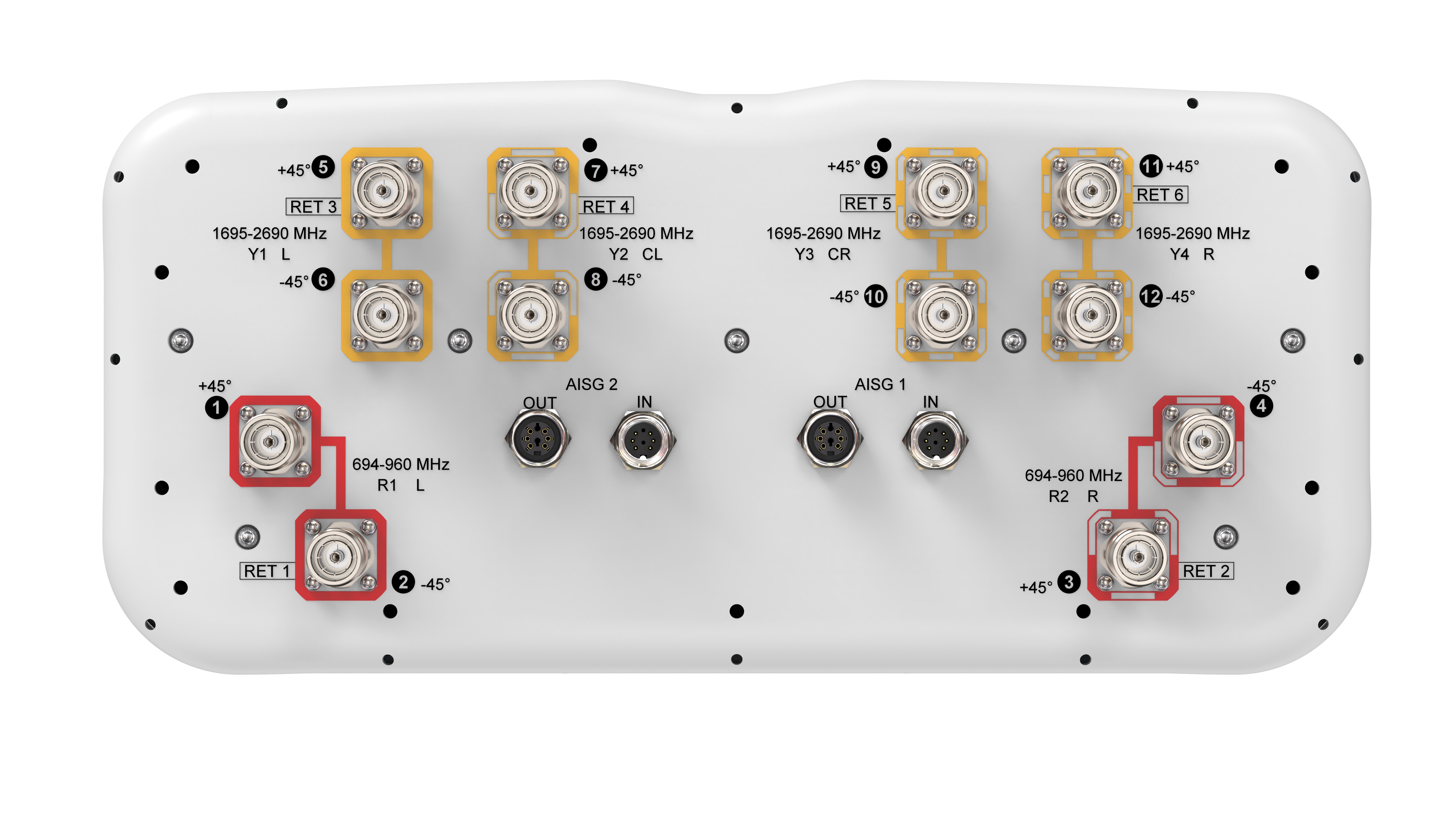 • Supports re-configurable antenna sharing capability enabling control of the internal RET system using up to two separate RET compatible OEM radios (Supports_r)