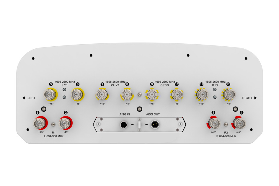 12-port sector antenna, 4x 694–960 and 8x 1695–2690 MHz, 65° HPBW, 6x RET