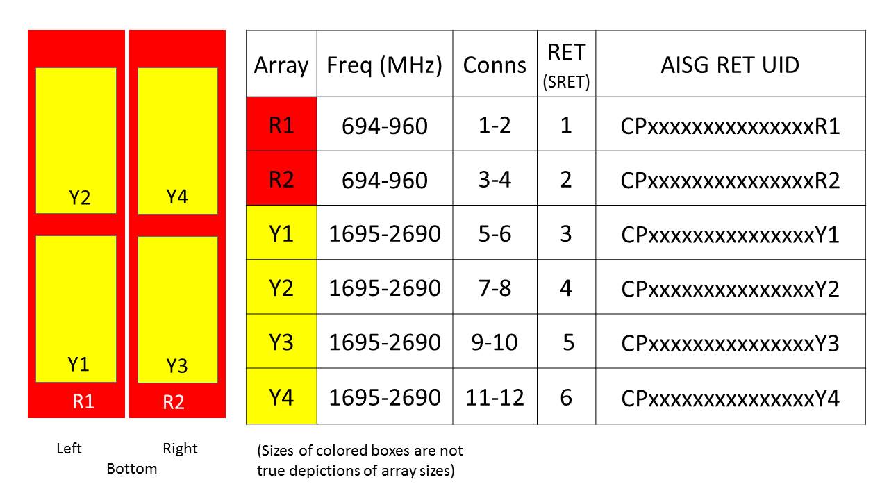 | Internal RET | High band (4) | Low band (2) |