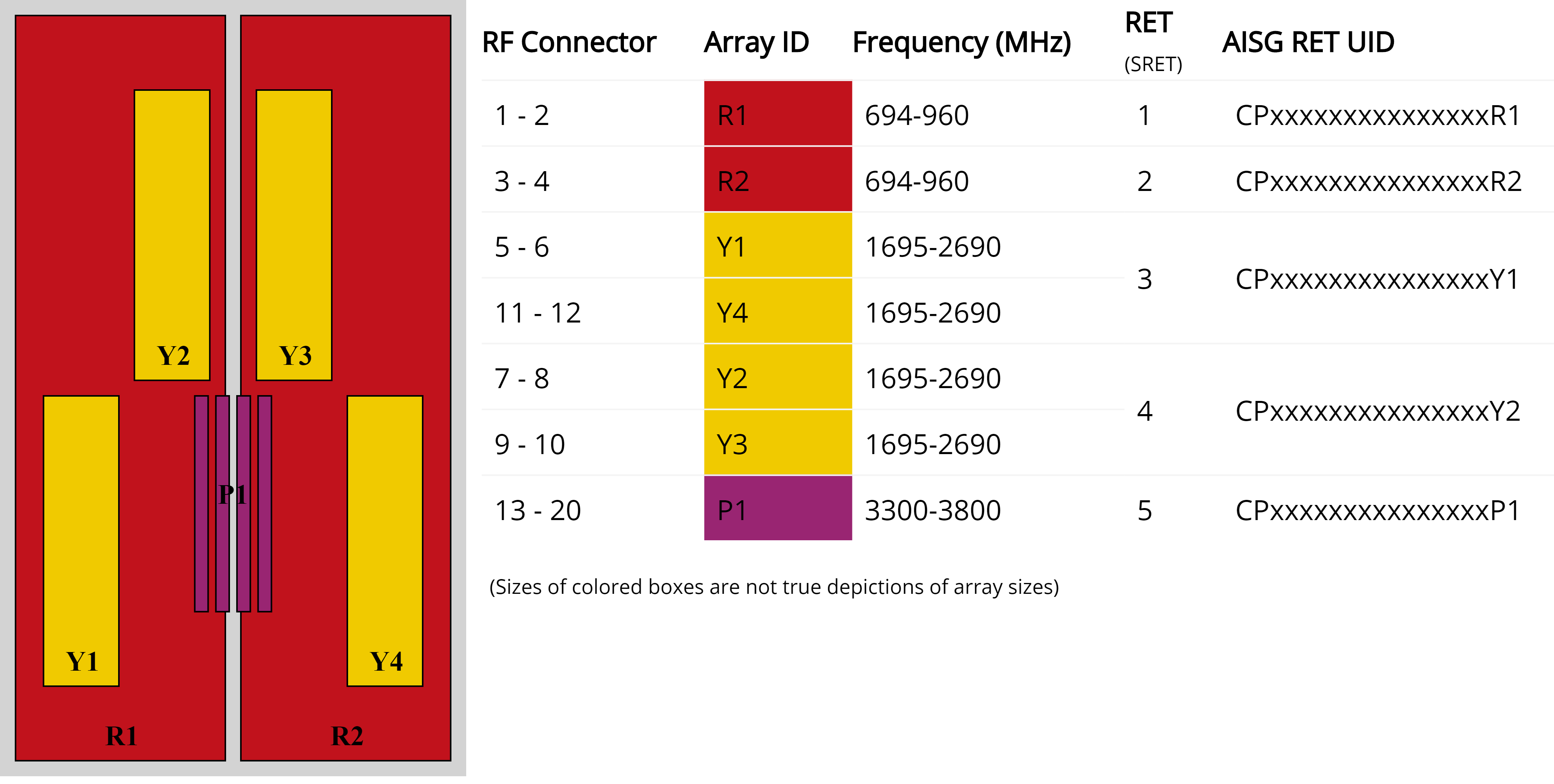 Internal RET High band (1) | Low band (2) | Mid band (2)
