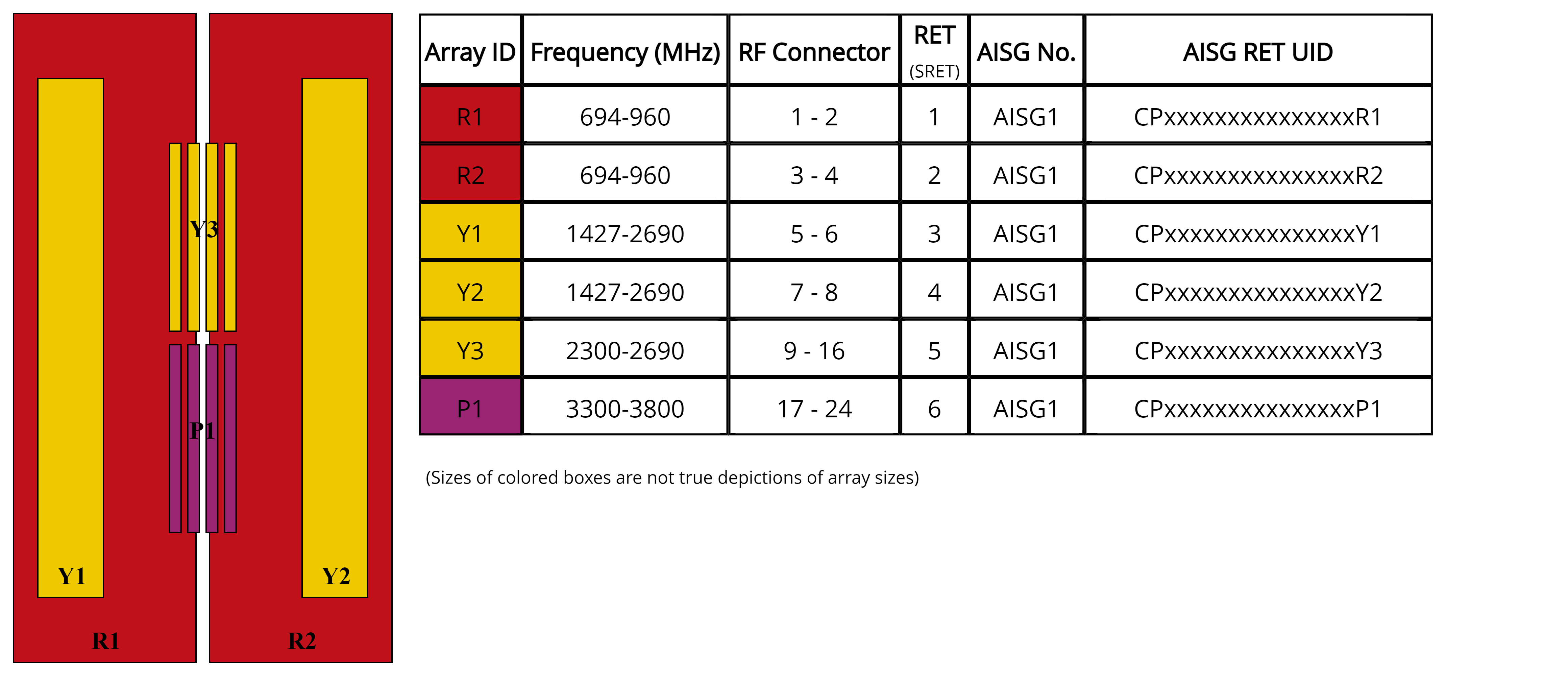 Internal RET High band (1) | Low band (2) | Mid band (3)