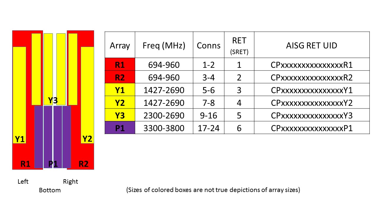 | Internal RET | High band (1) | Low band (2) | Mid band (3) |