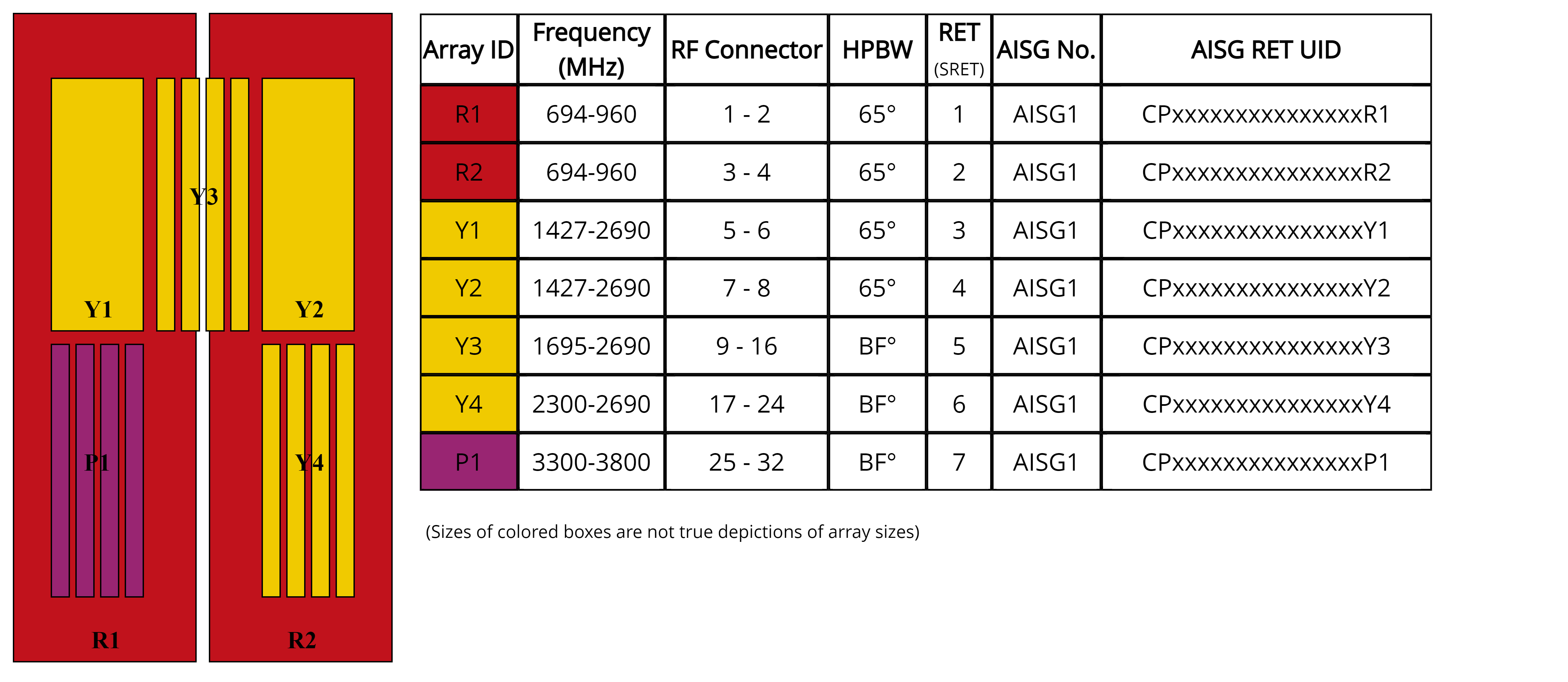 Internal RET High band (1) | Low band (2) | Mid band (4)