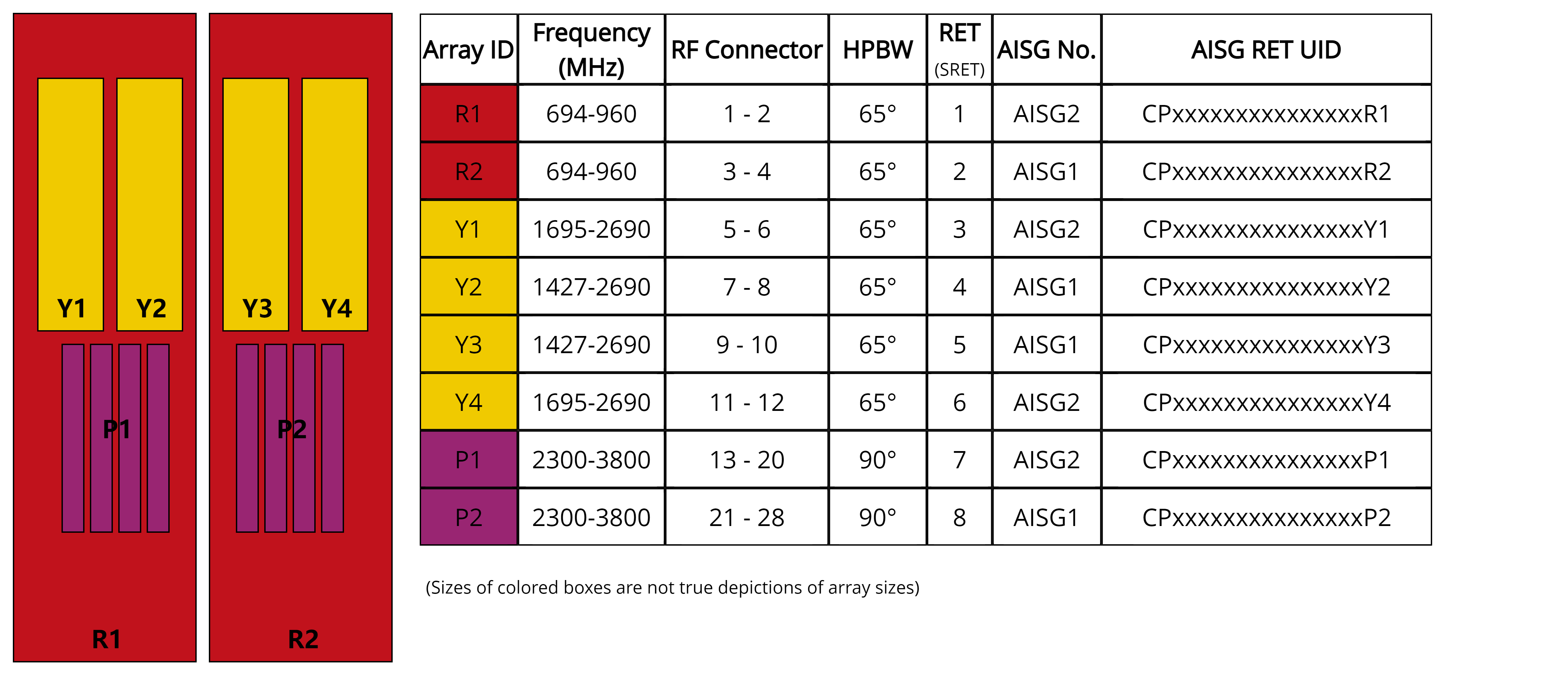 | Internal RET | High band (2) | Low band (2) | Mid band (4) |