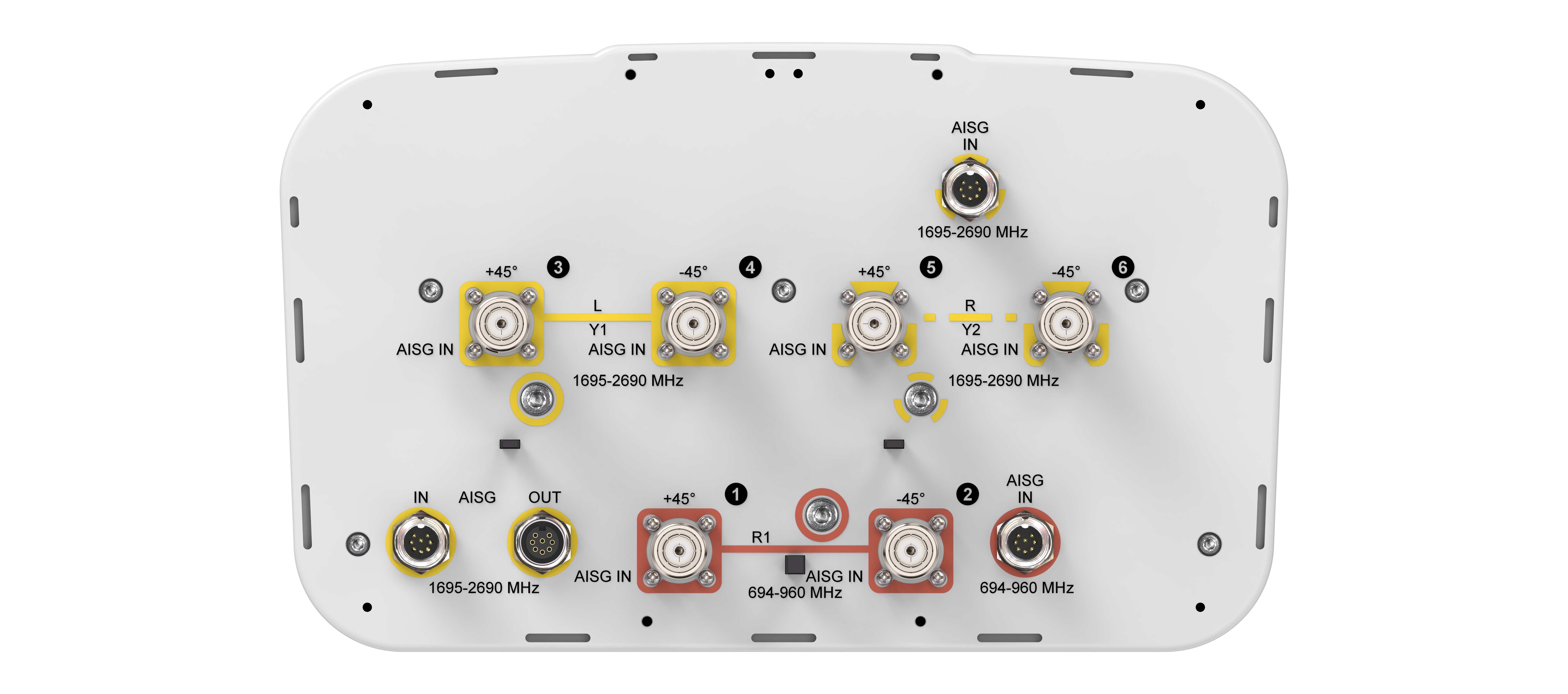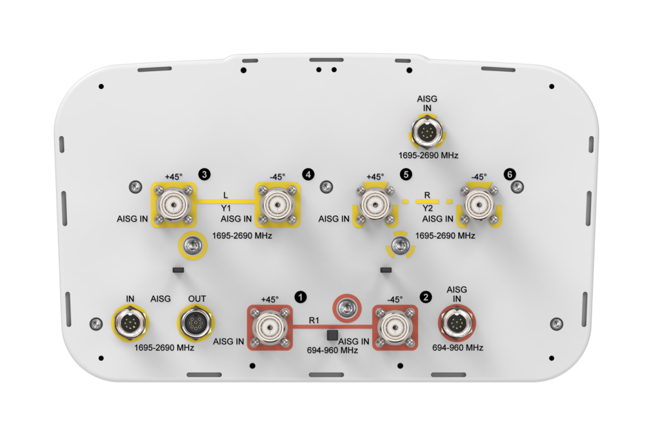 • Internal RET actuators are connected in SRET configuration, with dedicated AISG ports for each band