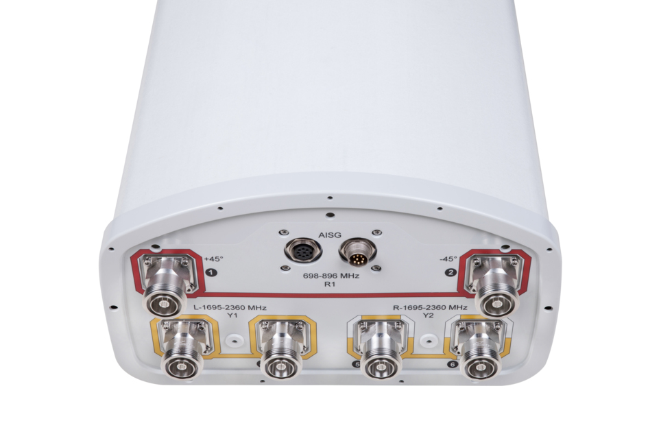 6-port sector antenna, 2x 698–896 and 4x 1695–2360 MHz, 85° HPBW, 3x RET