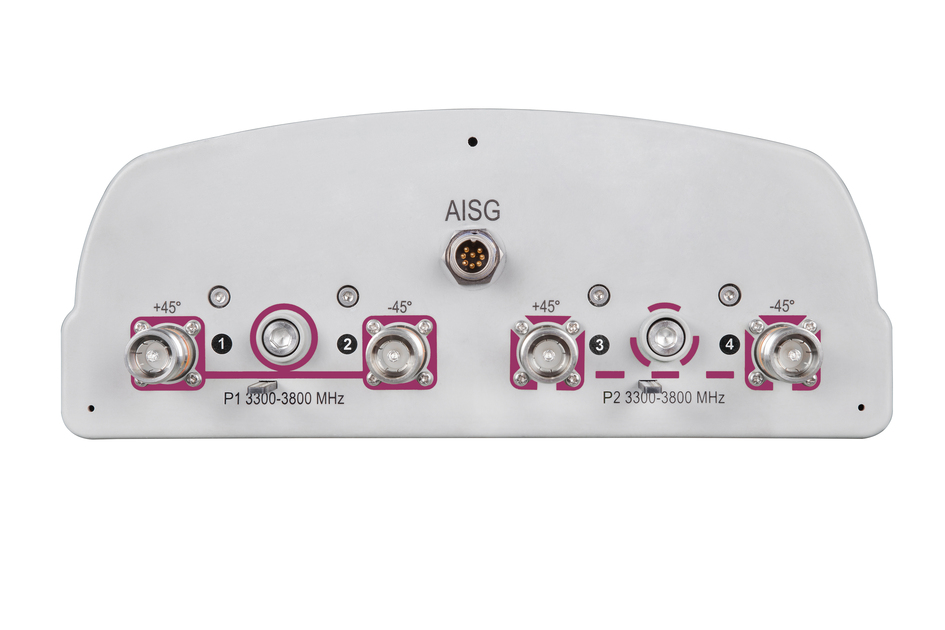 4-port sector antenna, 4x 3300–3800 MHz, 65° HPBW, 2x RET with manual override