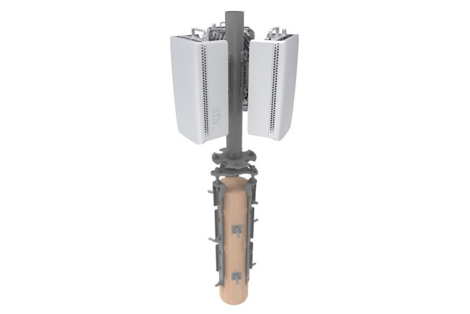 Mount for 5G mmWave equipment at the top of a wood pole 5"-9" diameter