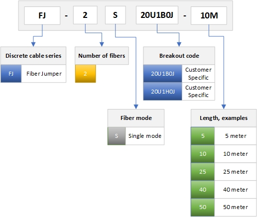 HELIAX® Discrete ruggedized Bi-Di Drop cable assembly, 2 Single Mode fiber, SLC to OptiTip Compaitble connector LSZH cable