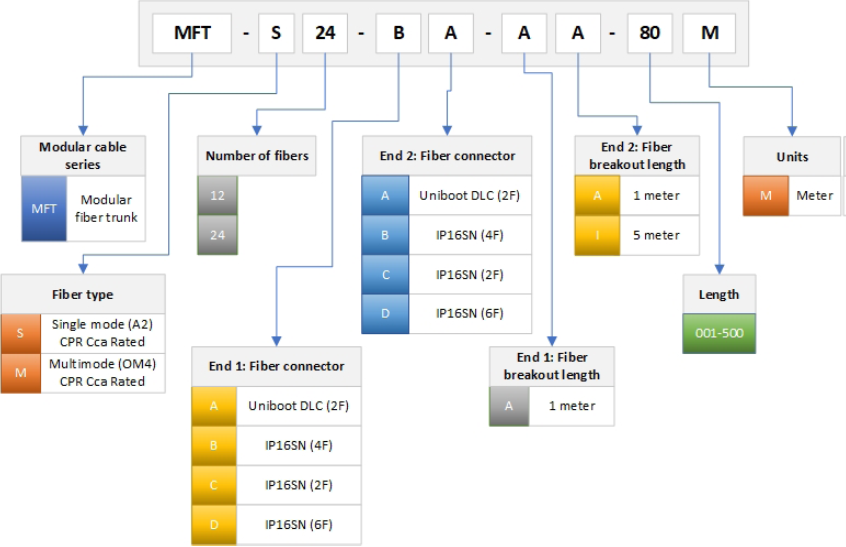 HELIAX® Modular Fiber Cable Assembly, 24 single mode fibers, End 1: DLC GEN1.5; End 2: DLC GEN 1.5; ** meters; LSZH CPR Cca. Anti-rodent with E-Glass Protection.