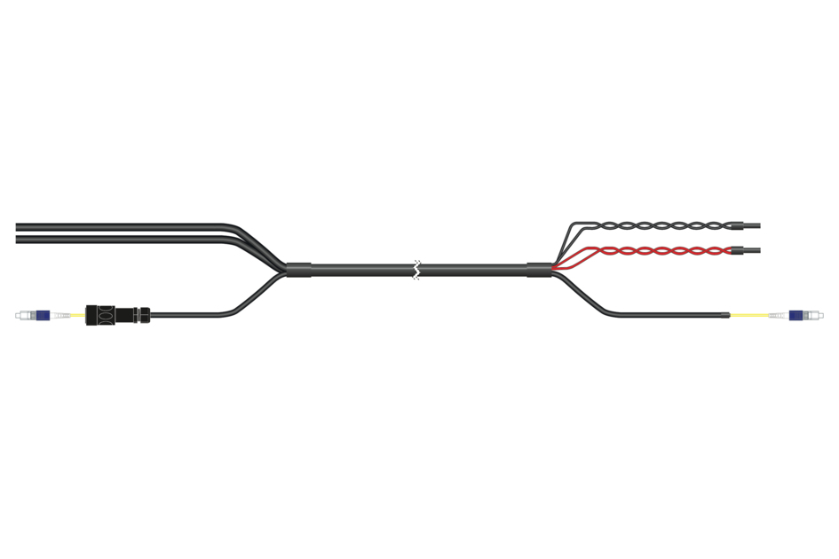 HELIAX® Hybrid Cable Assembly, BiDi, 6-OVP box to RRU, UL Type TC-ER,4 power conductors 10 AWG at OVP, 2 power cords 8 AWG at RRU, 1 Simplex fiber connectors, FullAXS, PVC jacket, aluminum armor, OVP gland insert kit included