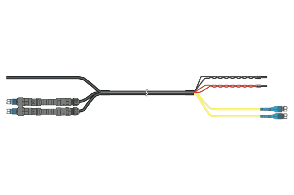 HFT410-2SVHEF - HELIAX® Hybrid Cable Assembly, OVP box to RRU, UL Type TC-ER, 1 DC feed for RRU, 4 fiber, PVC jacket, aluminum armor, OVP gland insert kit included