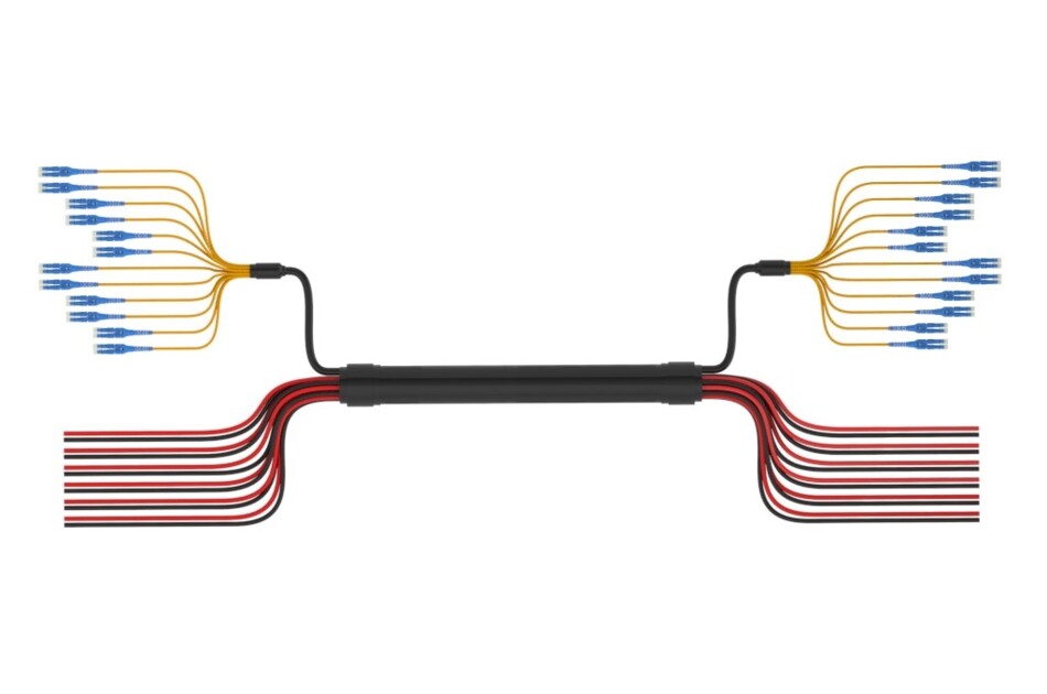 HELIAX® Hybrid Cable Assembly, 6 X 12, 12 X 4AWG 19-Strand Conductors, 24 SM Fiber, DLC-DLC, PVC jacket, Cu Foil Shield