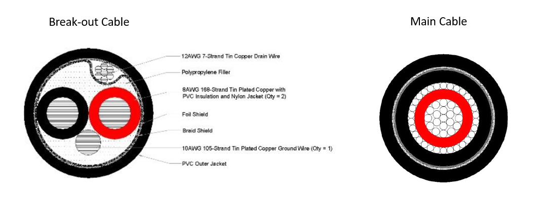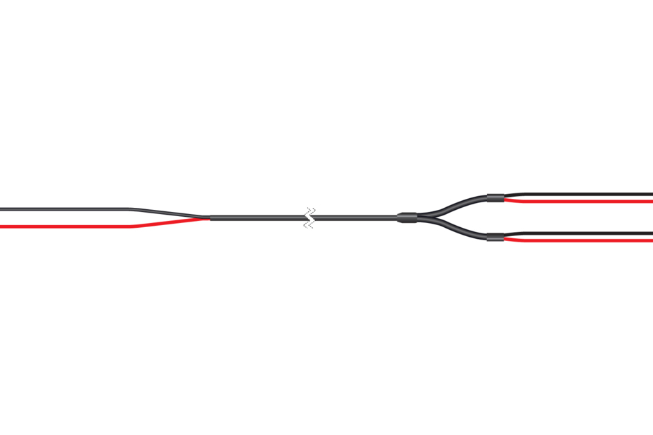 HELIAX® Remote Radio Head Power Y-Cable, OVP Top Enclosure End: one Red and one Black 8 AWG Conductors. RRU end: 2x8 AWG power cords with 1 Red and 1 Black conductors per cord. RRU length 2 feet, OVP length 25 feet