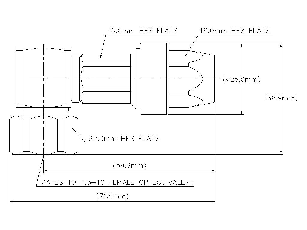4.3-10 Male, right angle, for 1/2 in FSJ4-50B cable