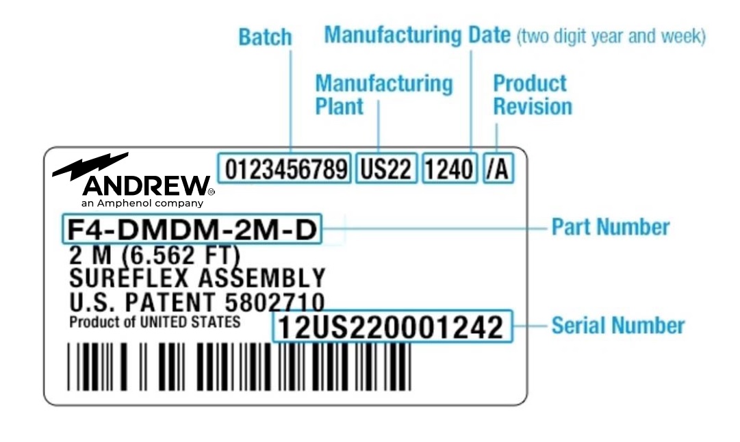 HELIAX® 1/2" Superflexible Fire retardant SureFlex® Jumper with interface types 7-16 DIN Male and 7-16 DIN Male, 3m, with black non-halogenated fire retardant polyolefin jacket