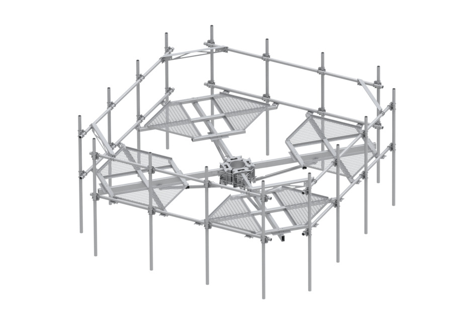 PIM Optimized Adjustable 4-Sector Monopole Platform with 15ft Face - 2-7/8in OD Face Pipes & Top Rail - Includes (16) 2-7/8in OD x 120in Antenna Pipes