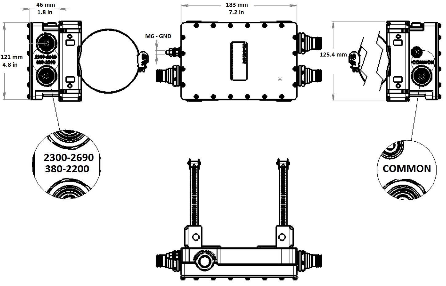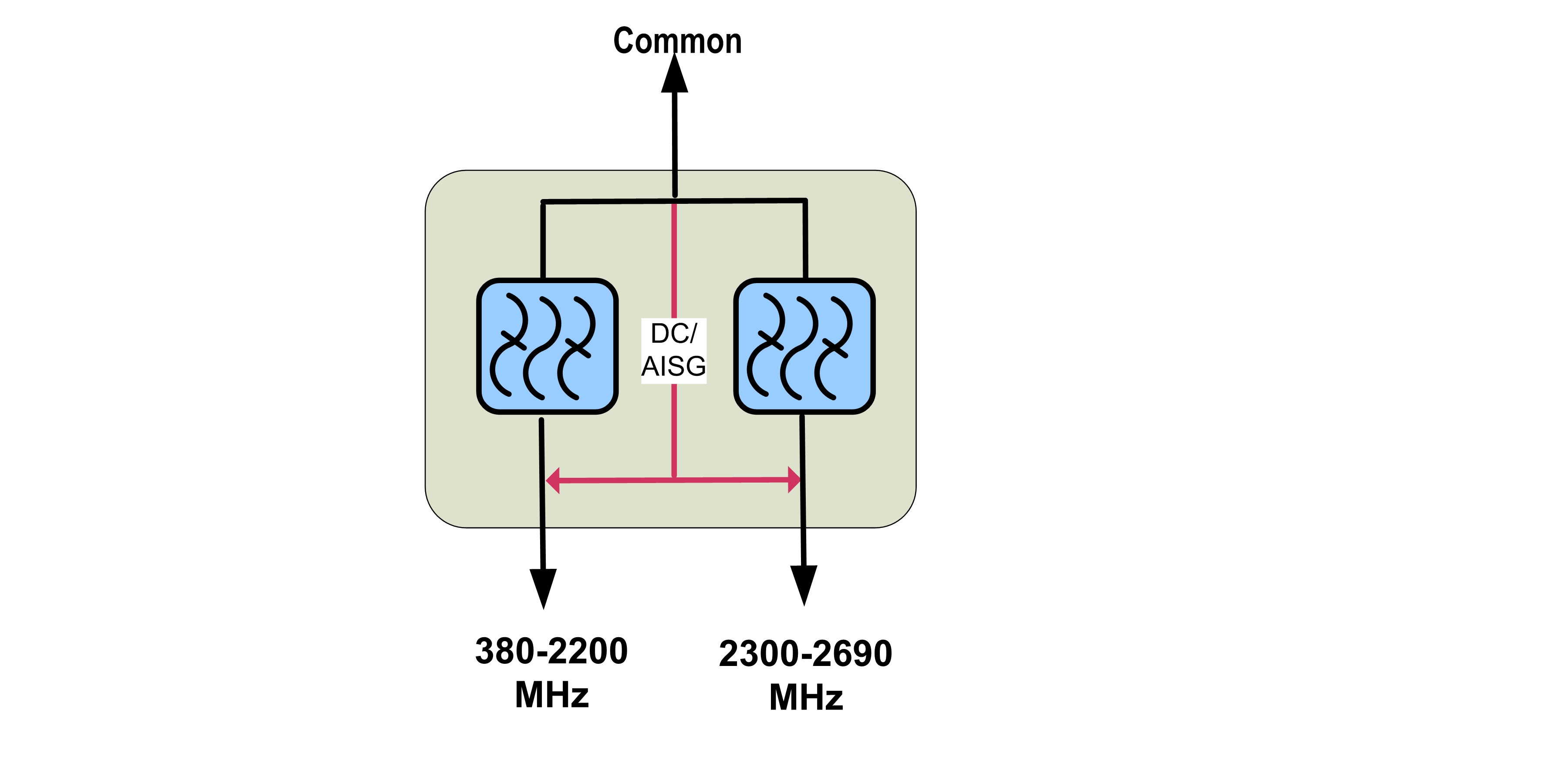 • Extremely wide lower passband (380-2200 MHz) provides flexibility for various combining schemes