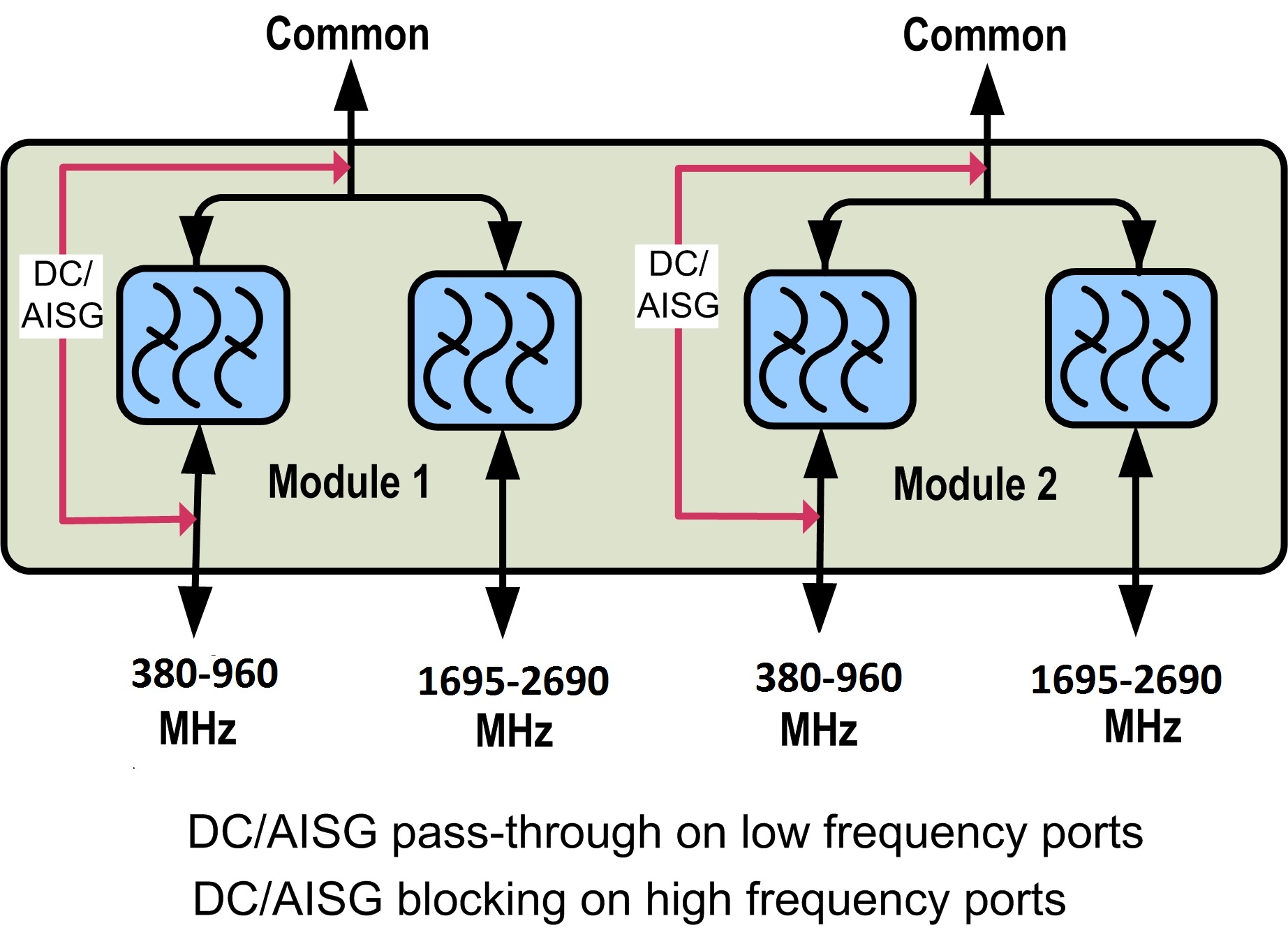 Ultra Compact Twin Diplexer 380-960/1695-2690MHz, DC Low, 4.3-10 connectors