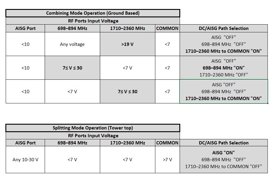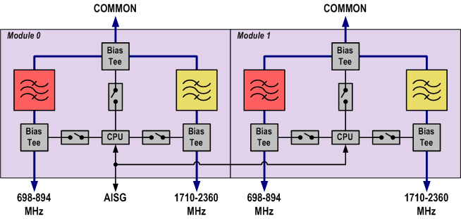 | dc/AISG Pass-through, combiner | dc Sensing |