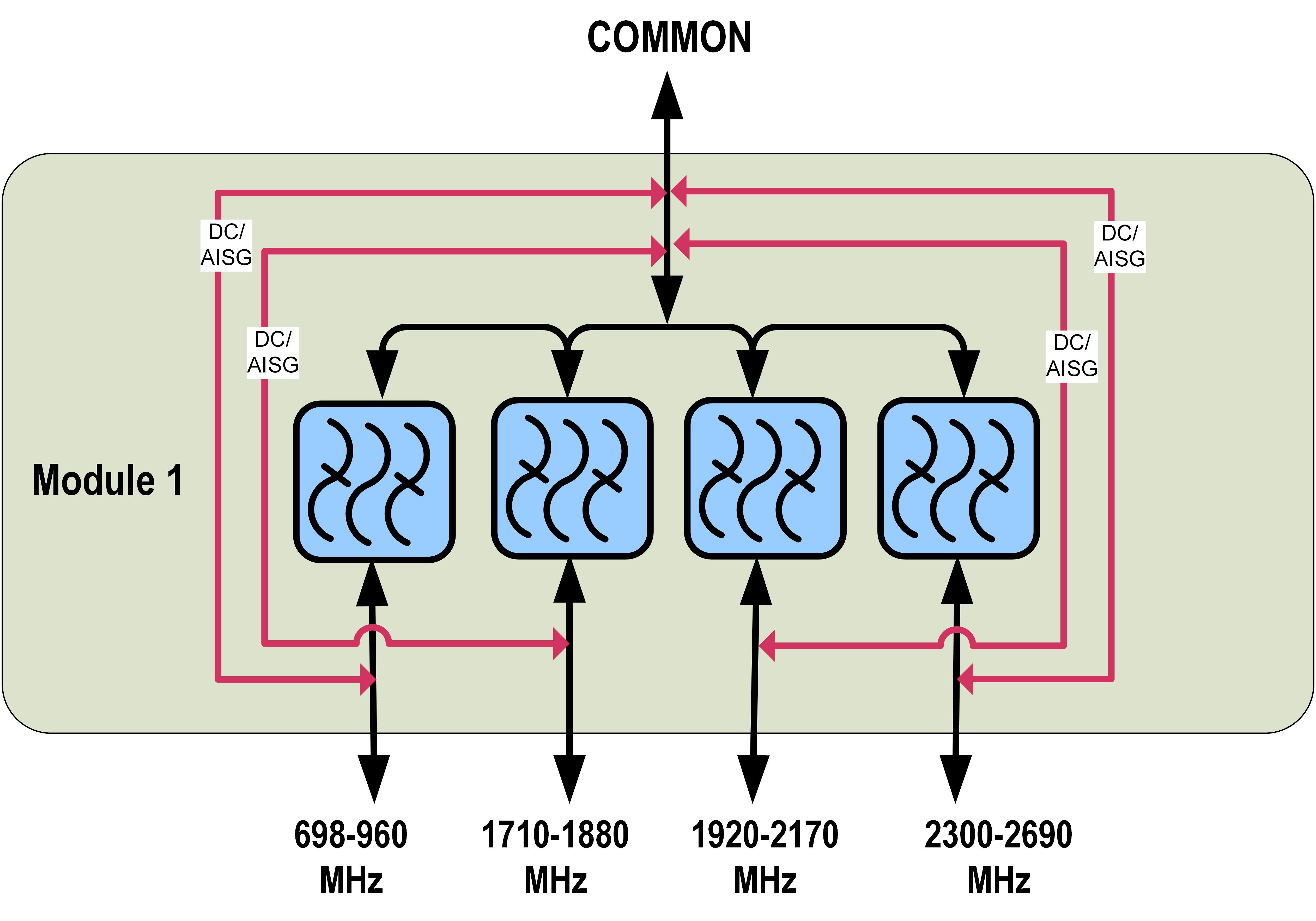 | dc/AISG Pass-through, demultiplexer | Branch 1 | Branch 2 | Branch 3 | Branch 4 |