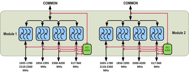 Twin Quadplexer 617-960/AWS-WCS/PCS/ CBRS-C-Band, DC Sense,, 4.3-10 connectors