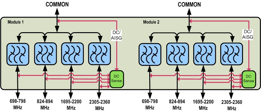 Twin Quadplexer, 700/850/PCS-AWS/WCS,DC Sense, 4.3-10