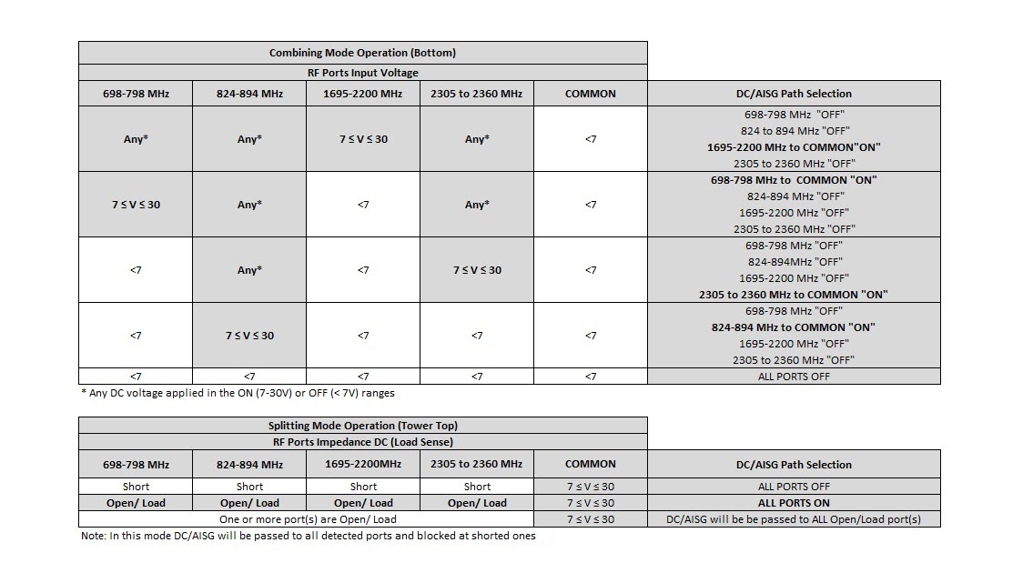 Port Designation 698–798 824–894 AWS-PCS WCS