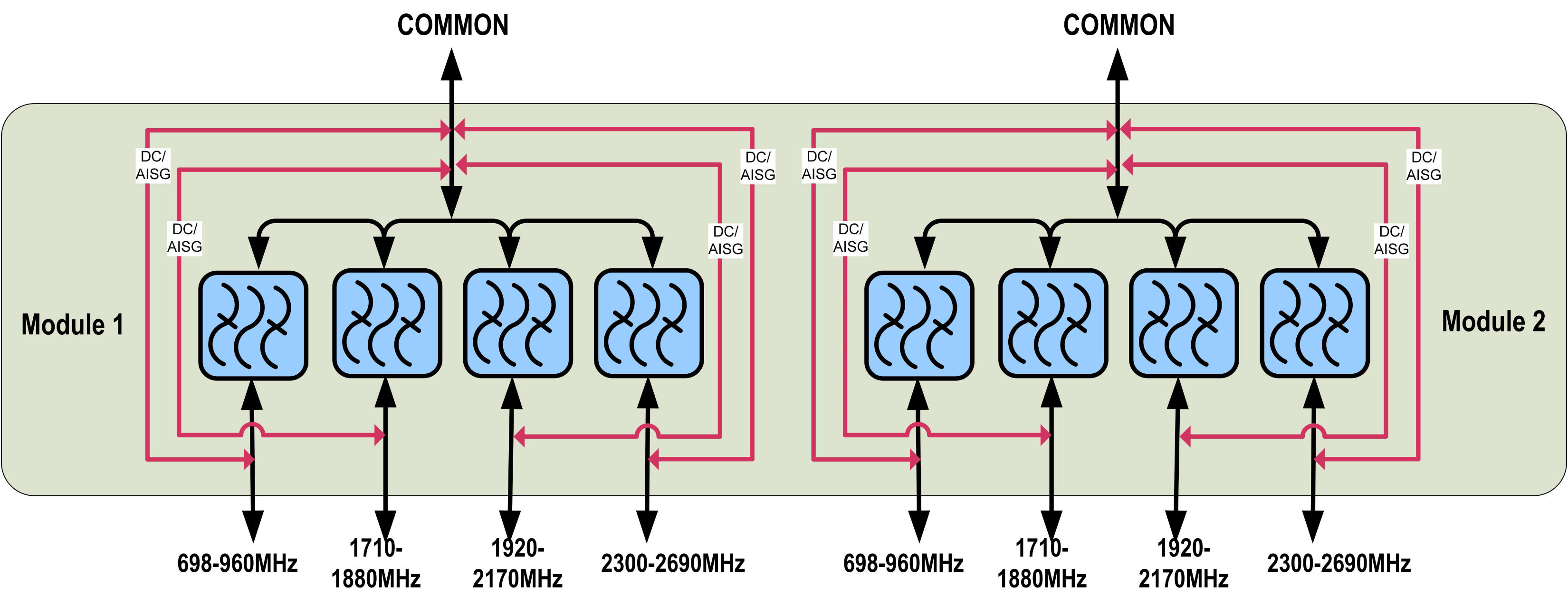 - dc/AISG pass-through on all frequency ports