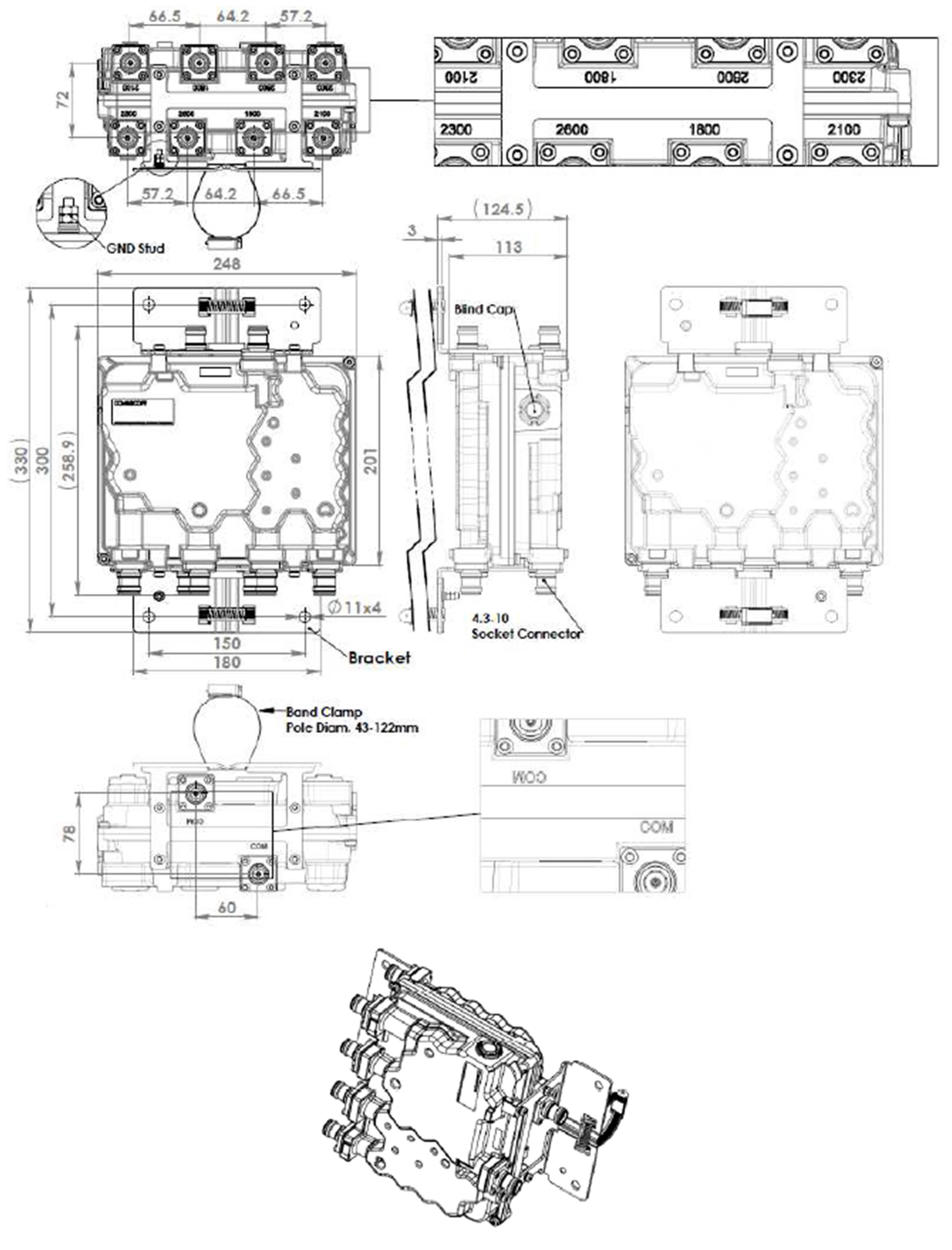 | Port Designation | PORT 1 1710-1880MHz | PORT 2 1920-2170MHz | PORT 3 2300-2400MHz | PORT 4 2500-2690MHz |
