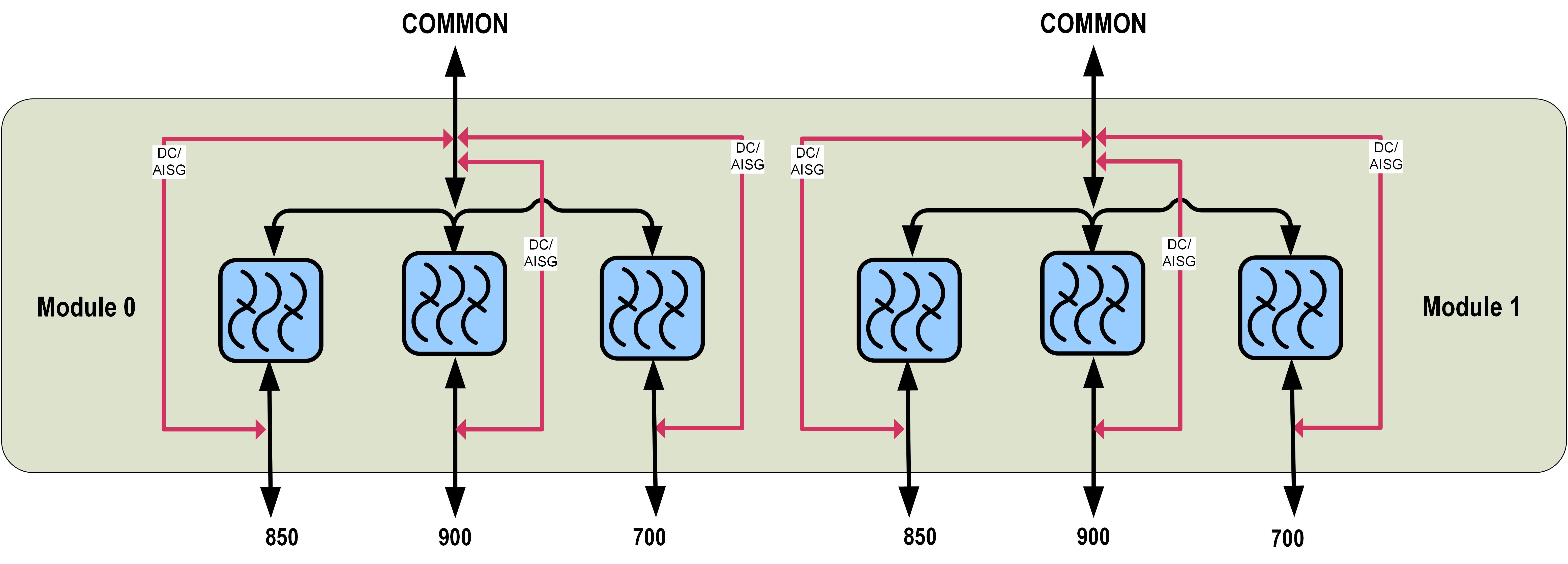 dc/AISG Pass-through, demultiplexer Branch 1 | Branch 2 | Branch 3