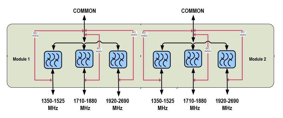 dc/AISG Pass-through, demultiplexer Branch 1 | Branch 2 | Branch 3