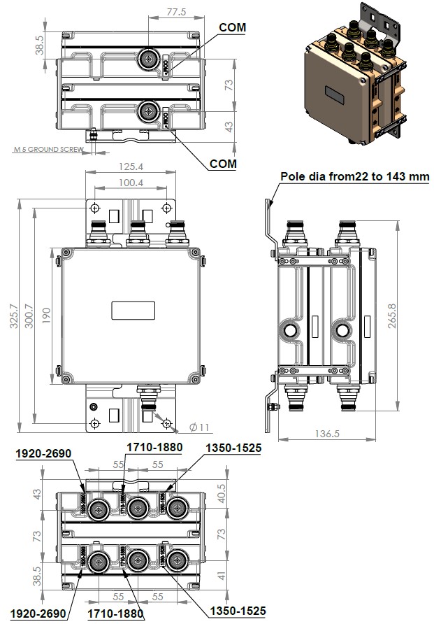 • Designed for network modernization application, introduction of LTE1400 on existing site