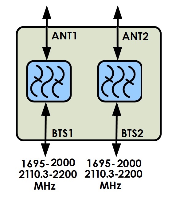 Twin AWS-PCS IMF for Broadcast Auxiliary Service (BAS) co-location, 4.3-10 connectors