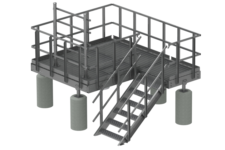Elevated Equipment Platform, 8 ft x 10 ft with Handrail, H-Frame and Landing. Stairs ordered separately to match site elevation.