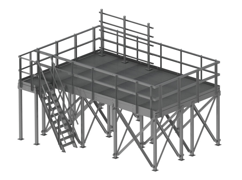 Equipment Platform Elevated Kit, 12 ft x 20 ft plus landing with Stairs, Handrail, & H-Frame for equipment mounting